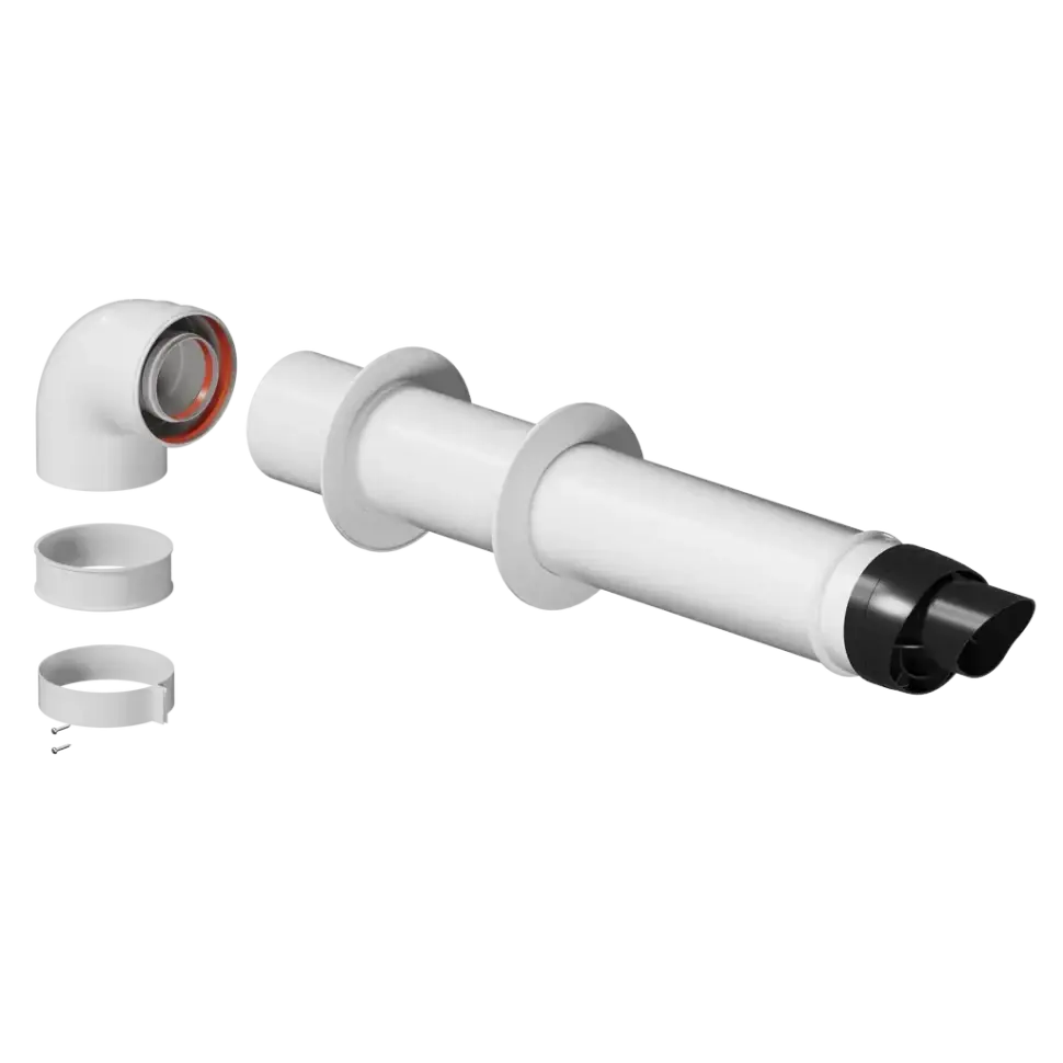 - Универсальность — совместим с большинством современных газовых котлов, рассчитанных на коаксиальную систему дымоудаления