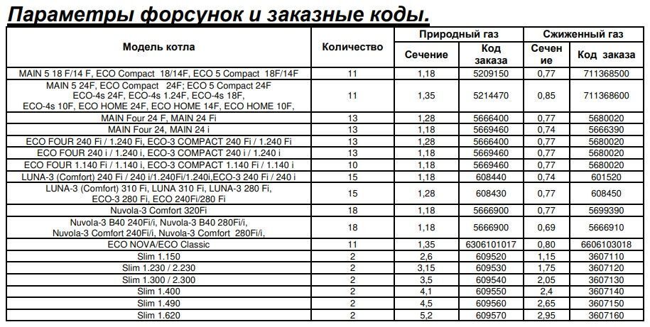 Комплект инжекторов для сжиженного газа для котлов серии Slim, Baxi